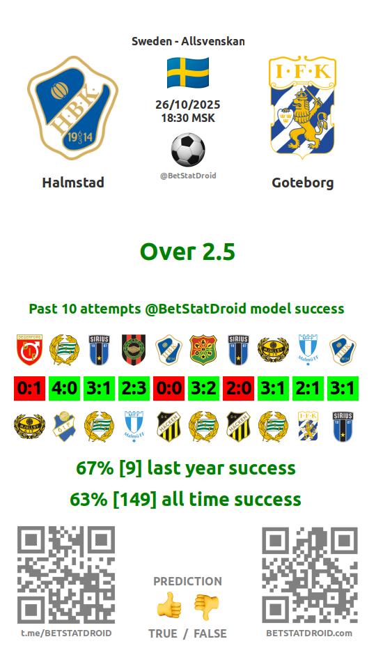 ✔ Halmstad scores under 2,5 goals in each of 9 last games