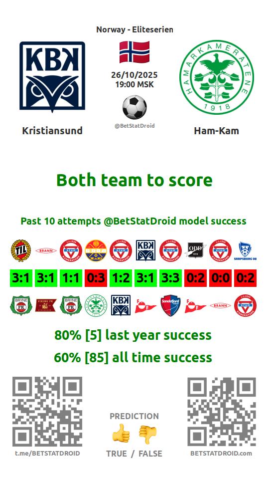 ✔ Kristiansund scores under 2,5 goals in each of 13 last games