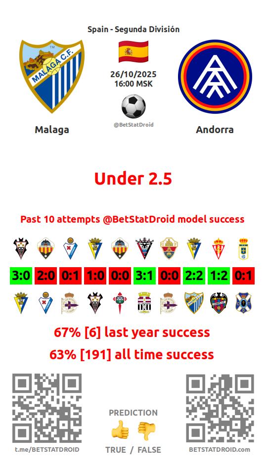 ✔ Malaga lost under 2,5 goals in each of 22 last games