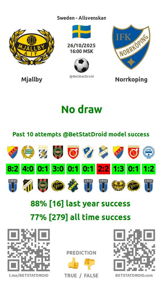 ✔ Mjallby lost under 1,5 goals in each of 20 last games