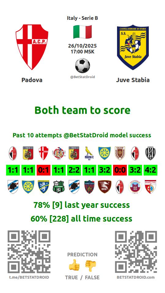 ✔ Padova scores under 2,5 goals in each of 12 last games