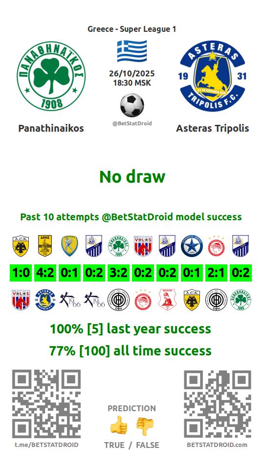 ✔ Panathinaikos lost under 1,5 goals in each of 8 last games