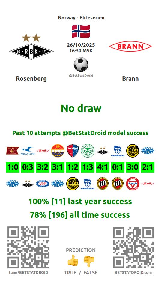 ✔ Rosenborg scores under 1,5 goals in each of 5 last games
