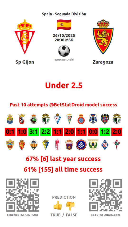 ✔ Sp Gijon scores under 2,5 goals in each of 11 last games