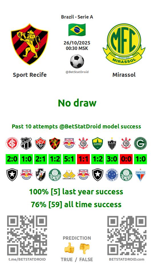 ✔ Sport Recife scores under 2,5 goals in each of 20 last games