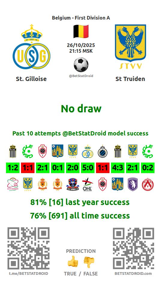 ✔ St Truiden scores under 2,5 goals in each of 8 last games