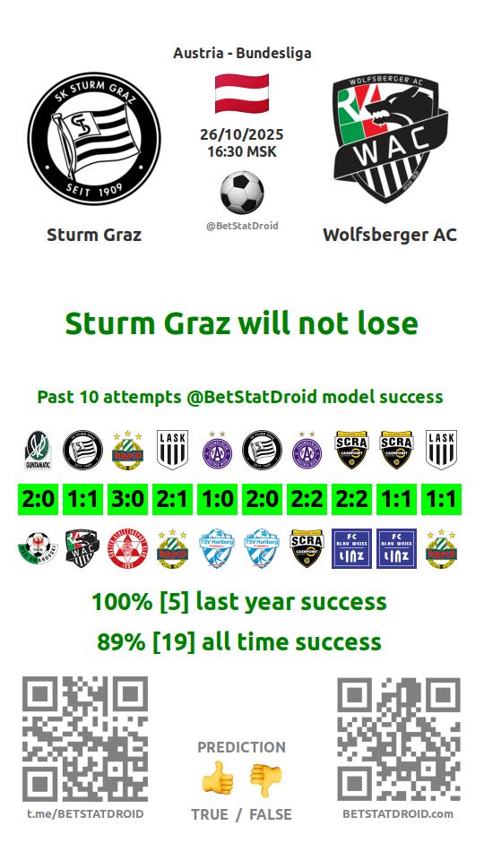 ✔ Sturm Graz lost under 2,5 goals in each of 15 last games