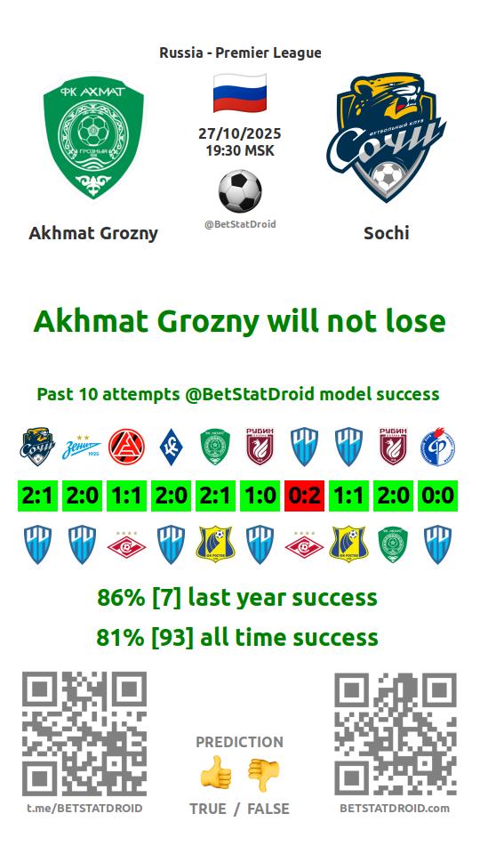 ✔ Akhmat Grozny scores under 2,5 goals in each of 10 last games