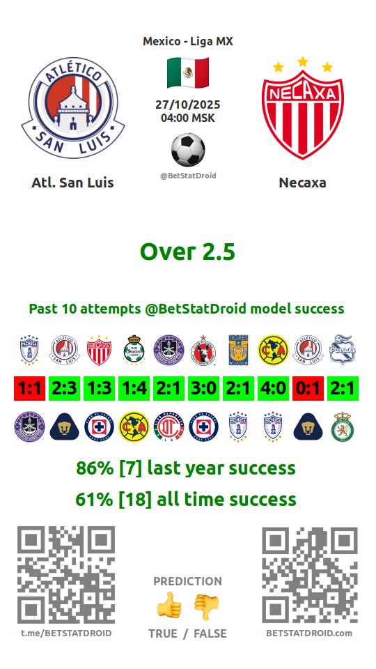 ✔ Atl. San Luis scores under 2,5 goals in each of 10 last games
