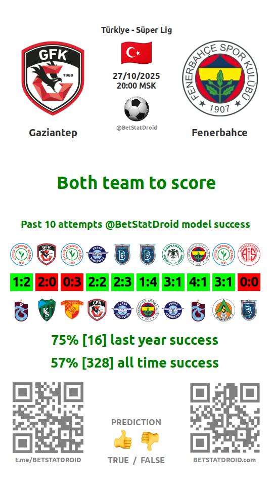 ✔ Gaziantep scores under 1,5 goals in each of 6 last games