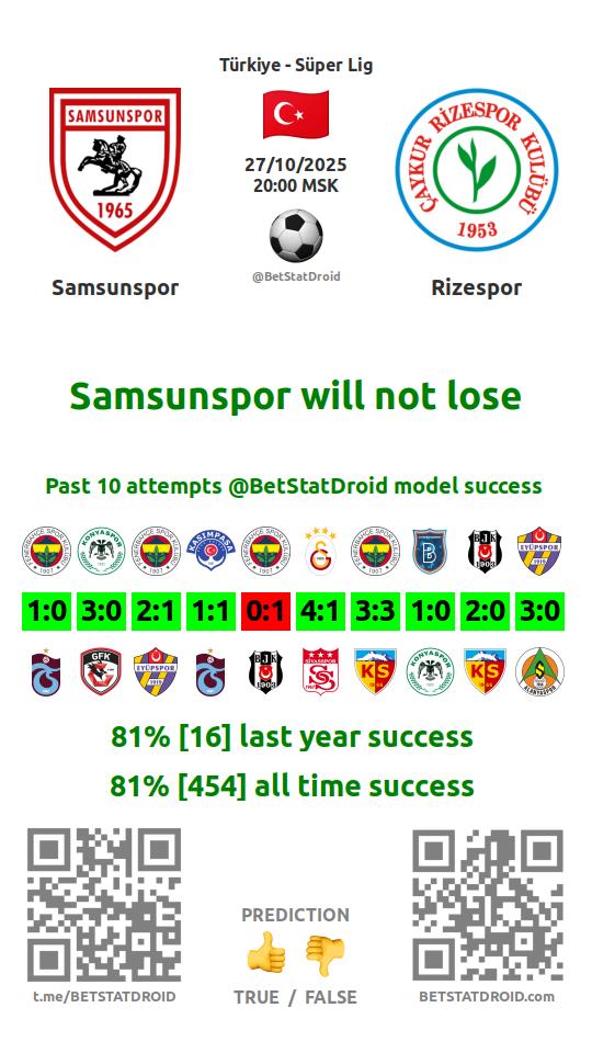 ✔ Samsunspor lost under 2,5 goals in each of 11 last games