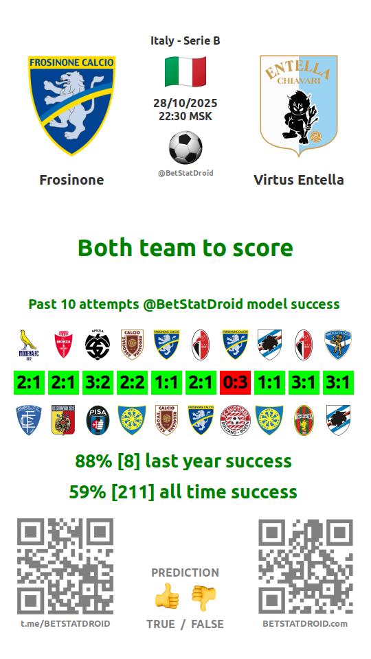 ✔ Virtus Entella scores under 2,5 goals in each of 24 last games