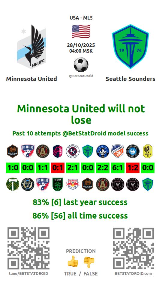 ✔ Minnesota United scores under 2,5 goals in each of 8 last games
