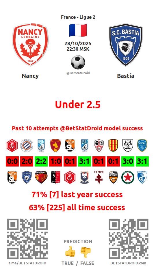✔ Nancy scores under 2,5 goals in each of 10 last games