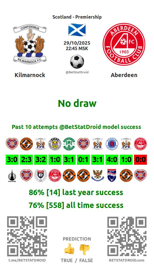 ✔ Kilmarnock scores under 2,5 goals in each of 11 last games