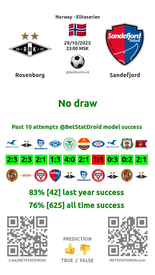 ✔ Sandefjord scores under 1,5 goals in each of 8 last games