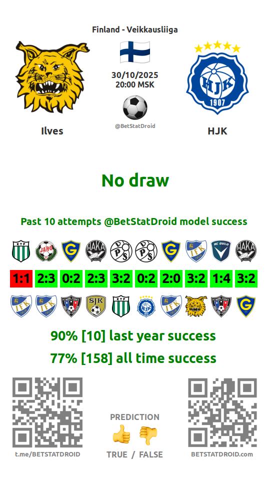 ✔ Ilves lost under 2,5 goals in each of 10 last games