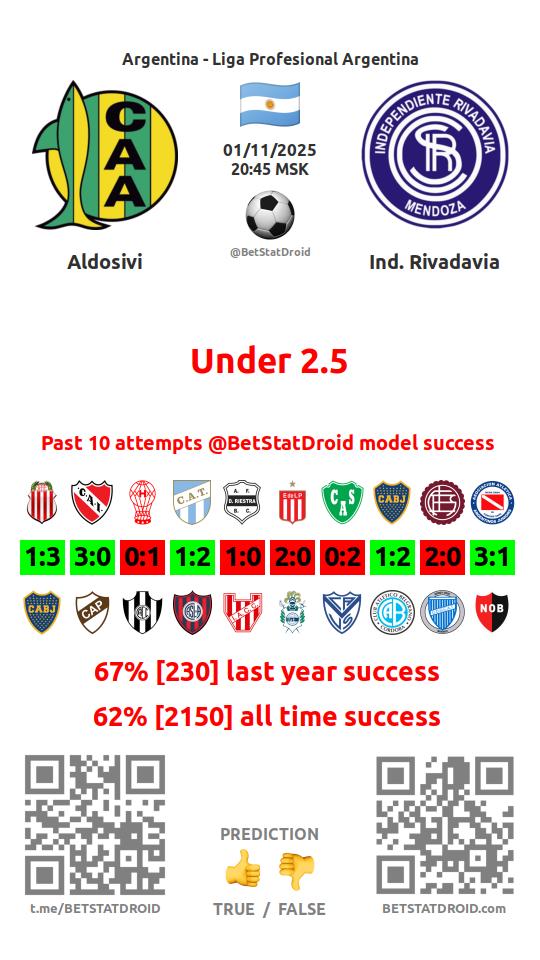 ✔ Aldosivi scores under 2,5 goals in each of 20 last games