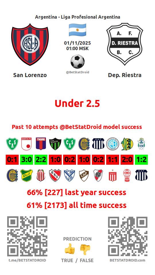 ✔ San Lorenzo lost under 2,5 goals in each of 49 last games