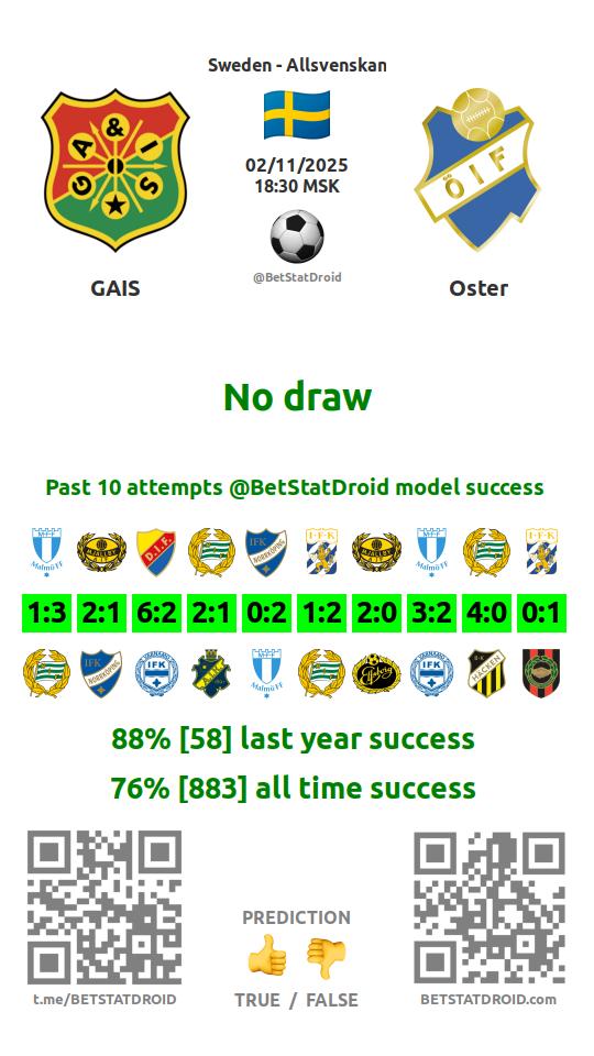 ✔ GAIS lost under 2,5 goals in each of 28 last games