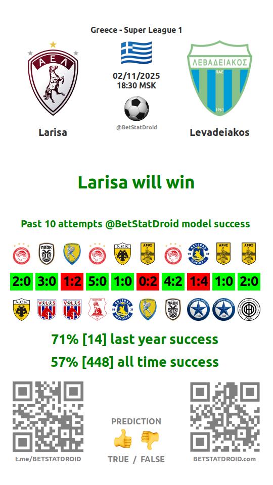 ✔ Larisa scores under 2,5 goals in each of 11 last games