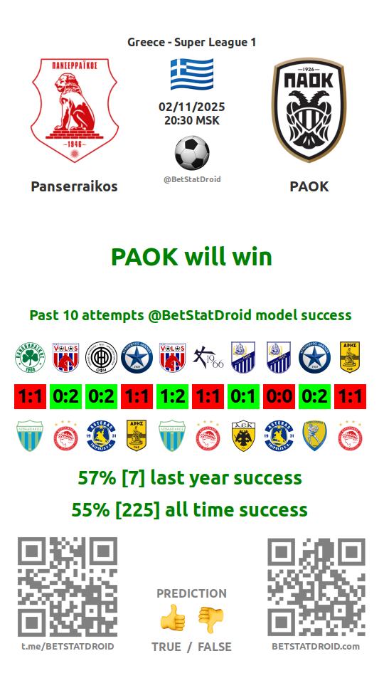 ✔ Panserraikos scores under 2,5 goals in each of 8 last games