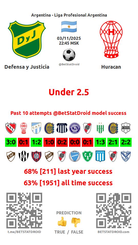 ✔ Defensa y Justicia scores under 2,5 goals in each of 33 last games