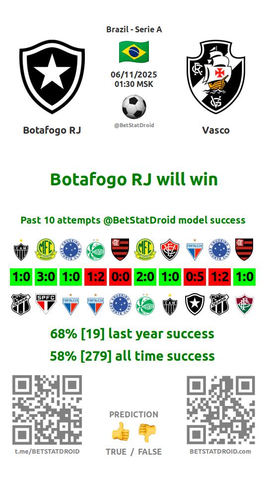 ✔ Vasco scores under 1,5 goals in each of 5 last games