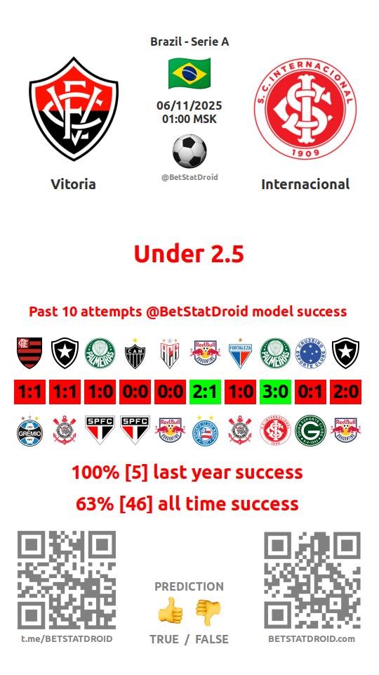 ✔ Vitoria lost under 2,5 goals in each of 31 last games