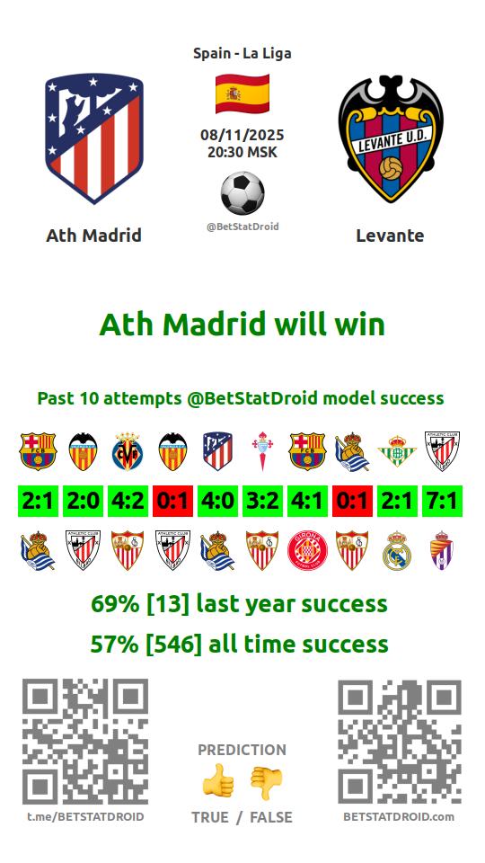 ✔ Ath Madrid scores under 2,5 goals in each of 8 last games