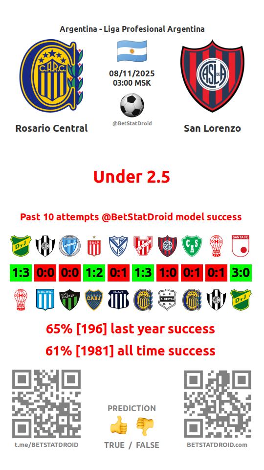 ✔ Rosario Central lost under 2,5 goals in each of 33 last games