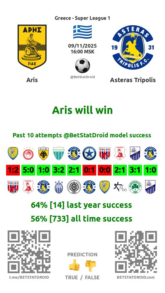 ✔ Aris lost under 2,5 goals in each of 25 last games