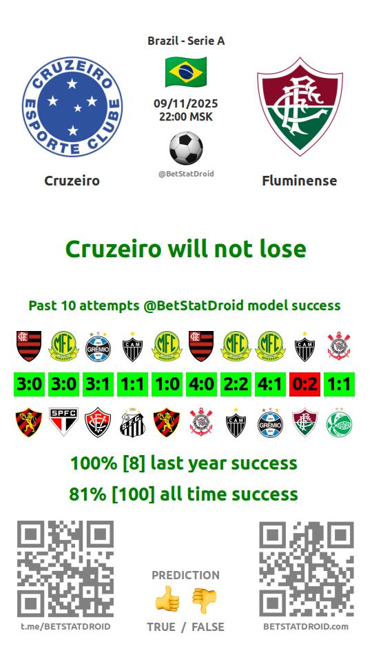 ✔ Cruzeiro lost under 1,5 goals in each of 8 last games
