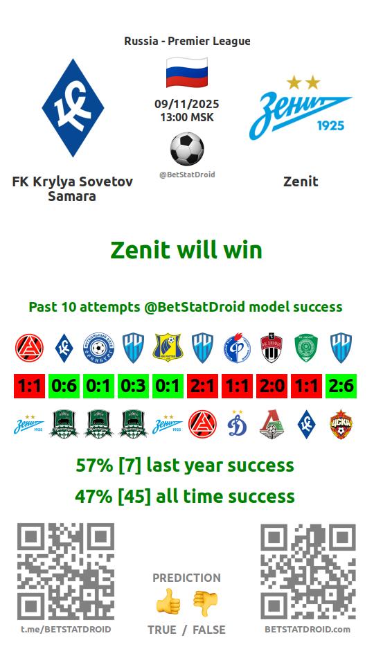 ✔ FK Krylya Sovetov Samara scores under 1,5 goals in each of 9 last games