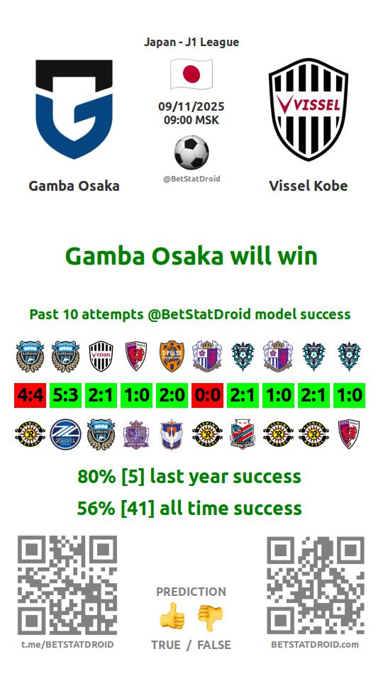 ✔ Gamba Osaka scores under 2,5 goals in each of 12 last games