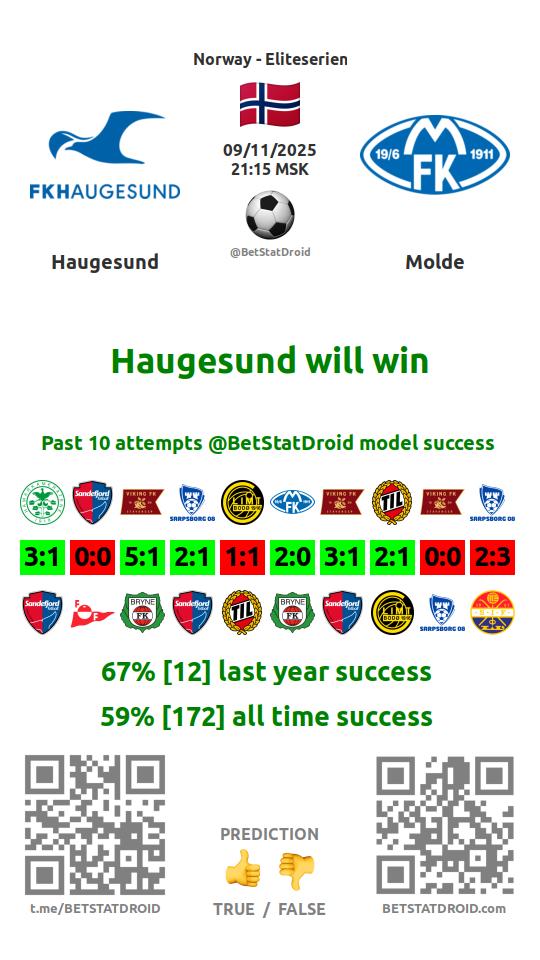 ✔ Haugesund scores under 1,5 goals in each of 8 last games