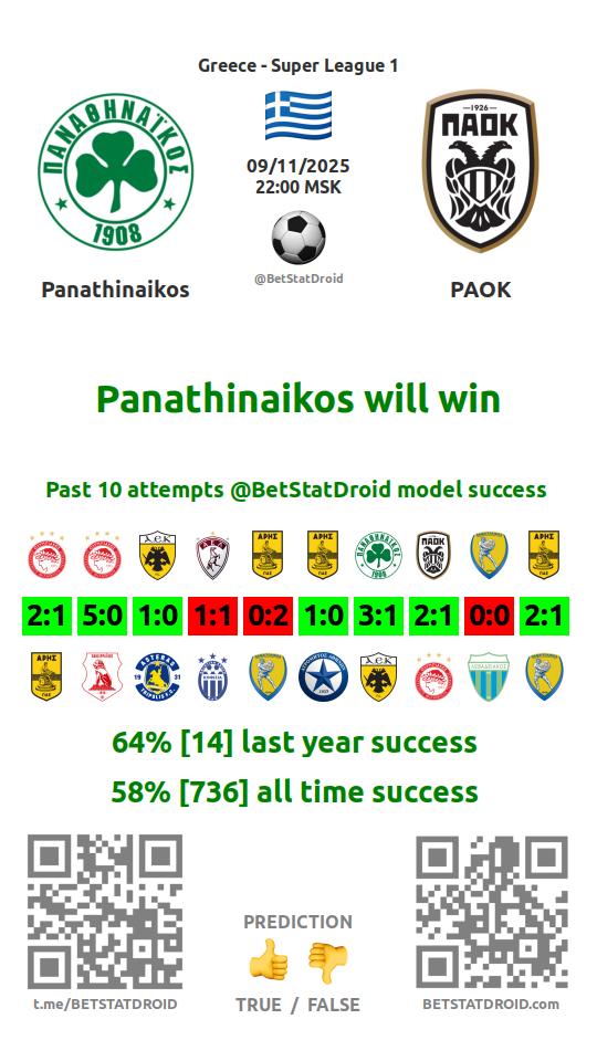 ✔ Panathinaikos lost under 1,5 goals in each of 9 last games