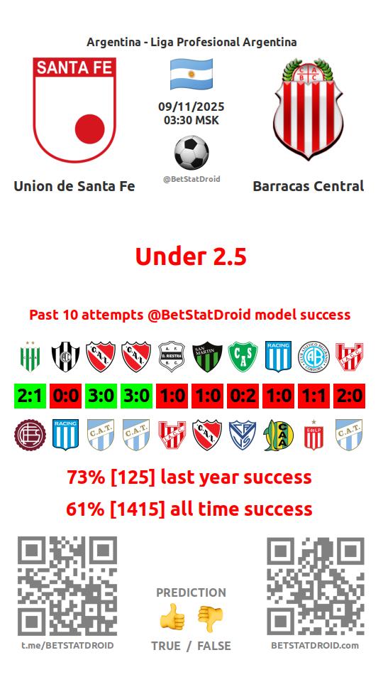 ✔ Union de Santa Fe lost under 2,5 goals in each of 16 last games