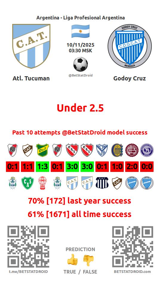 ✔ Atl. Tucuman scores under 2,5 goals in each of 9 last games