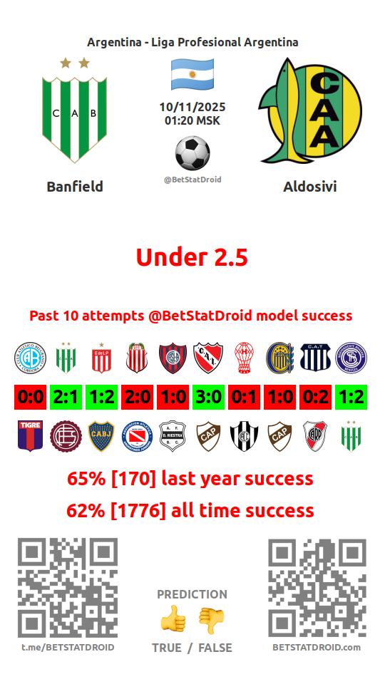 ✔ Aldosivi lost under 2,5 goals in each of 10 last games
