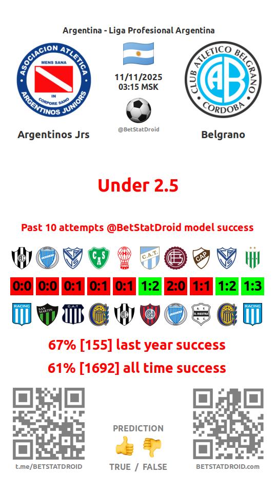 ✔ Belgrano lost under 2,5 goals in each of 11 last games