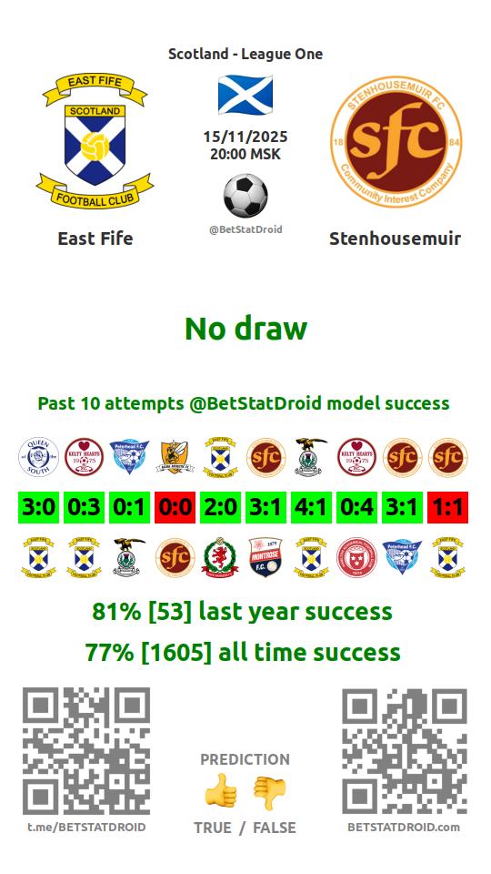 ✔ East Fife scores under 2,5 goals in each of 15 last games