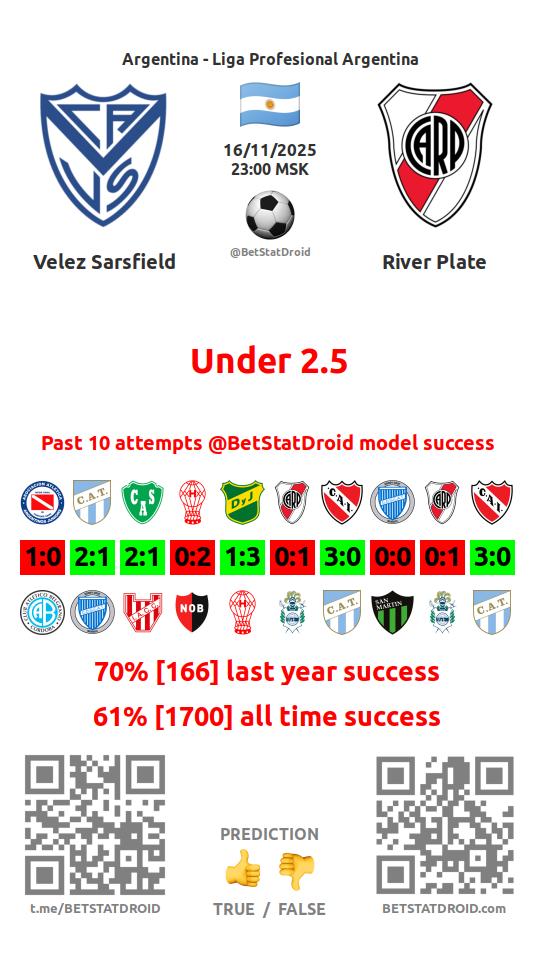 ✔ Velez Sarsfield lost under 2,5 goals in each of 50 last games