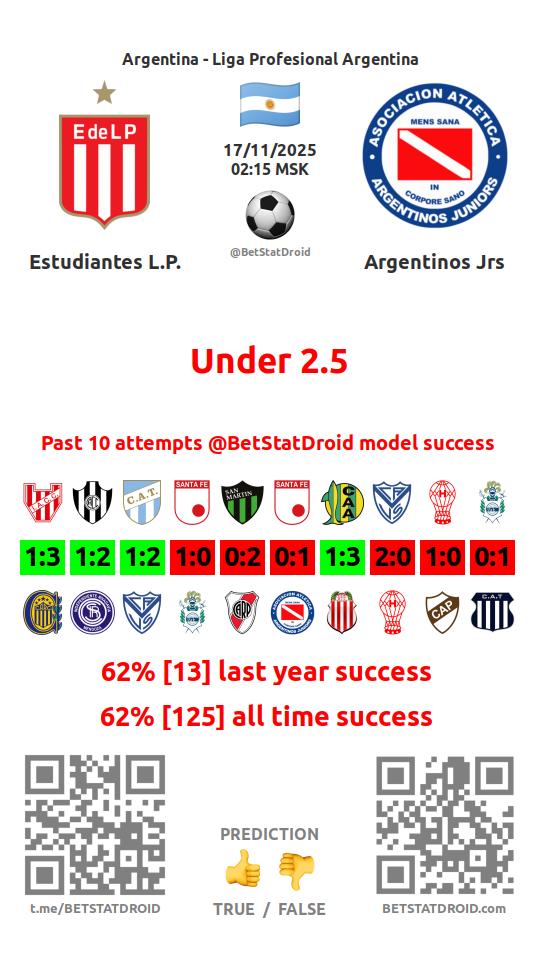 ✔ Estudiantes L.P. scores under 2,5 goals in each of 25 last games