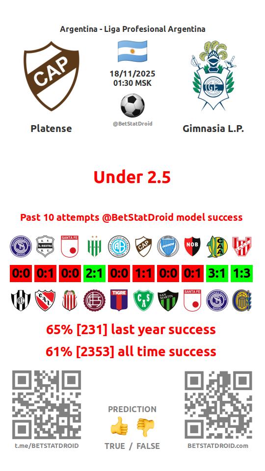✔ Platense scores under 2,5 goals in each of 54 last games