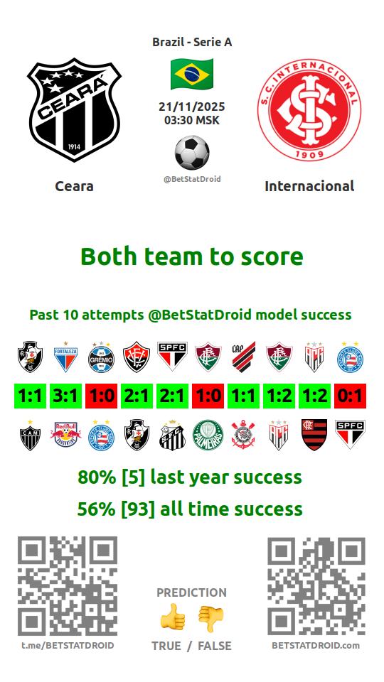 ✔ Ceara scores under 2,5 goals in each of 11 last games