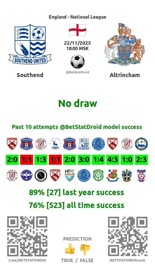 ✔ Altrincham scores under 2,5 goals in each of 18 last games