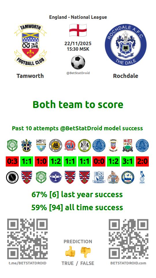 ✔ Tamworth scores under 1,5 goals in each of 7 last games