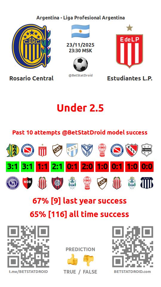 ✔ Rosario Central lost under 2,5 goals in each of 46 last games