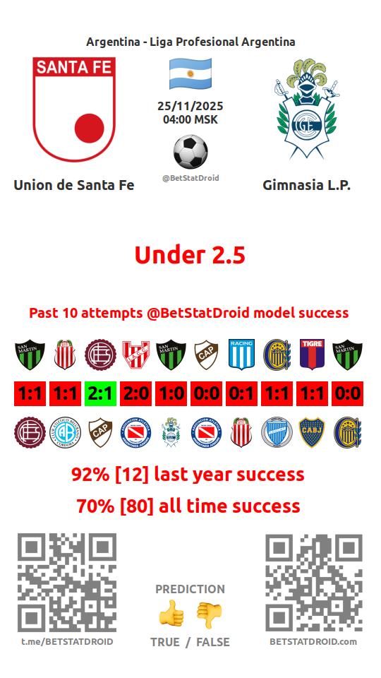 ✔ Union de Santa Fe lost under 2,5 goals in each of 17 last games